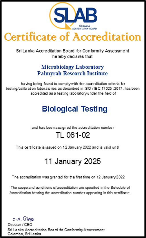 - Undertaking experiments relating to microbiology on the products of Palmyrah foods and provide a report based on the tests and also render counseling.